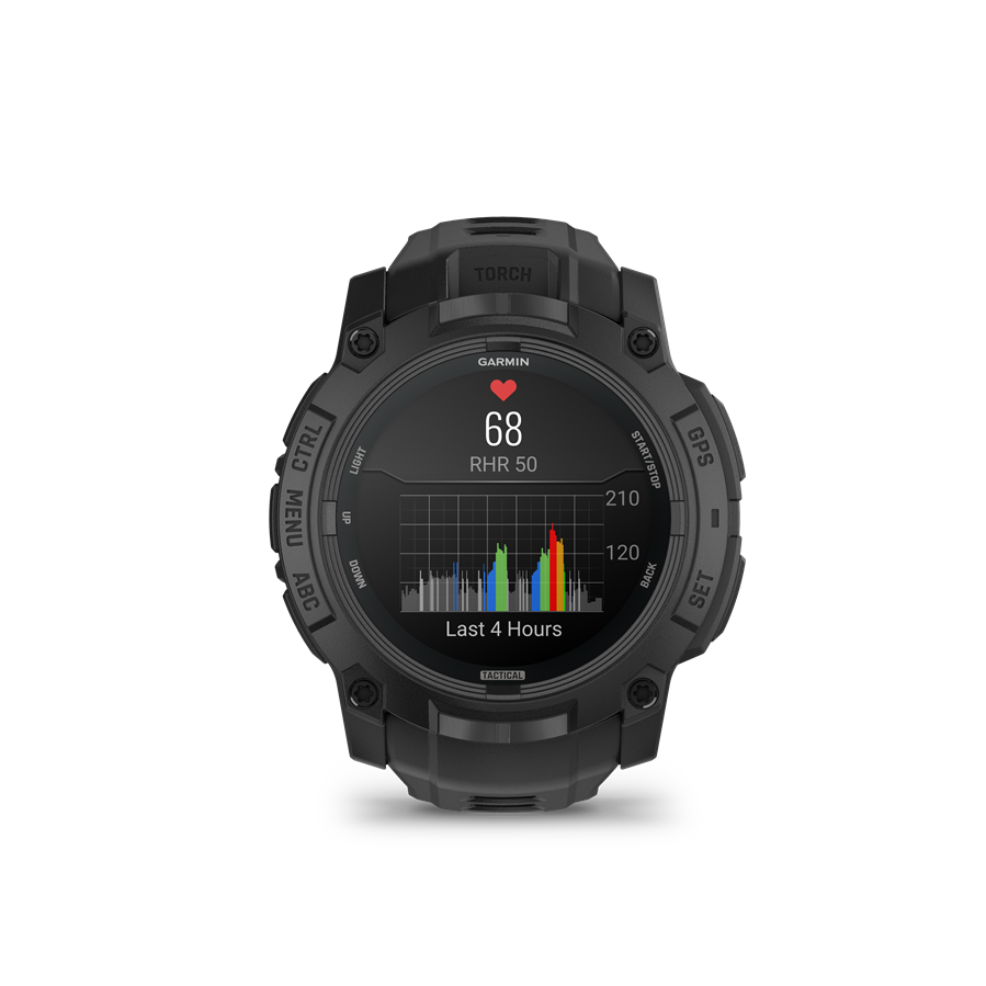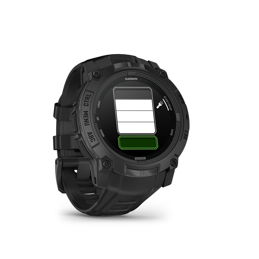 Az Instinct 3 – Tactical Edition egy masszív GPS-es okosóra, amelyet a legnehezebb feladatokra terveztek, napelemes töltéssel, fémmel megerősített előlappal és speciális taktikai funkciókkal.