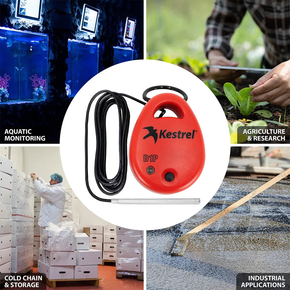 Könnyedén figyelheti és naplózhatja a hőmérsékleti viszonyokat – folyadékokban, talajban vagy nehezen elérhető helyeken – a strapabíró és megbízható Kestrel DROP Probe D1P szondával. Széles körű alkalmazásokhoz tökéletes, kiválóan teljesít kutatási környezetben, hűtőlánc-kezelésben, kereskedelmi fagyasztókban és hűtőrendszerekben, biztosítva a pontos hőmérséklet-monitorozást és a kritikus előírások betartását. Merülő szondájának és vezeték nélküli csatlakoztathatóságának köszönhetően a pontos és megbízható hőmérséklet-követés tökéletes eszköze változatos és kihívást jelentő körülmények között.