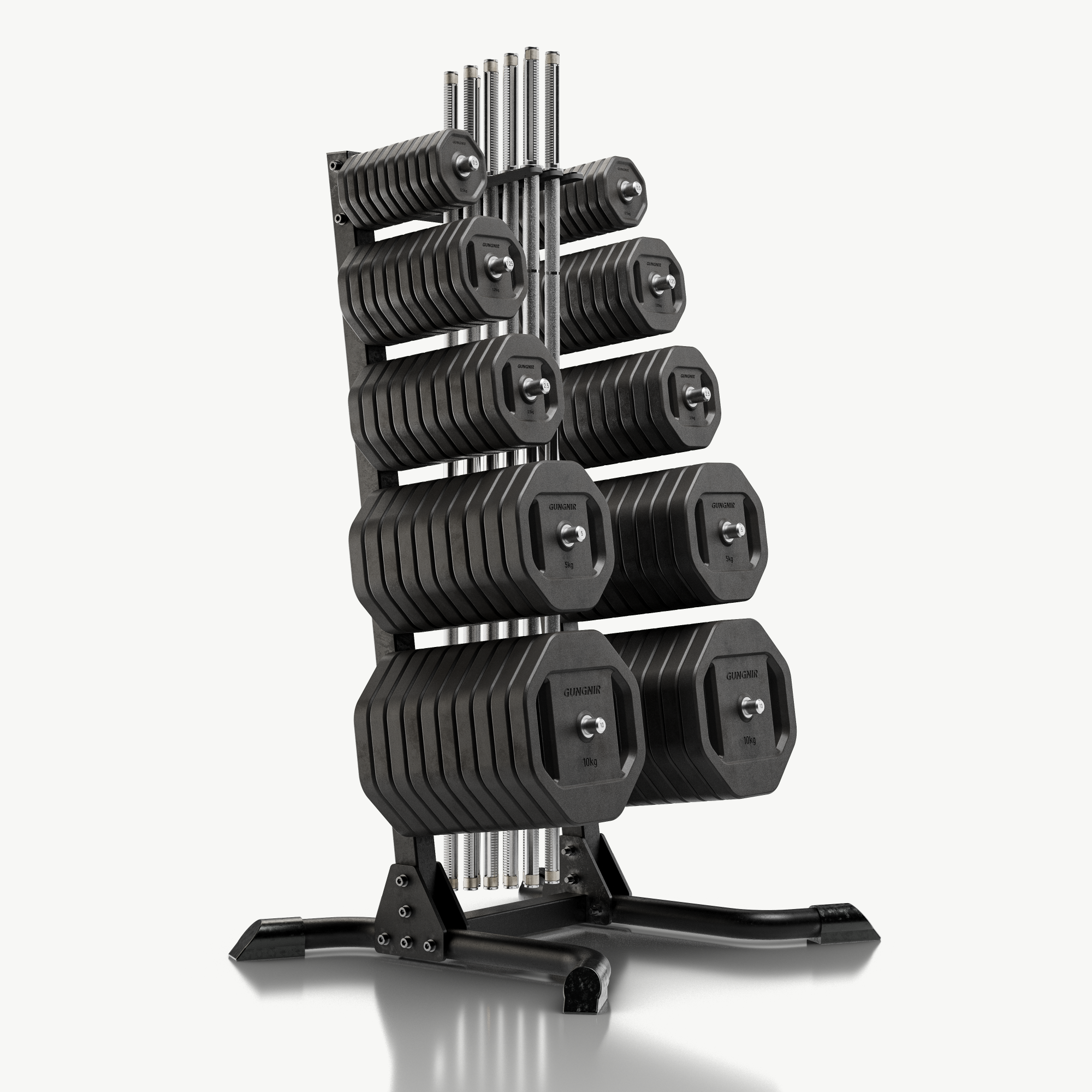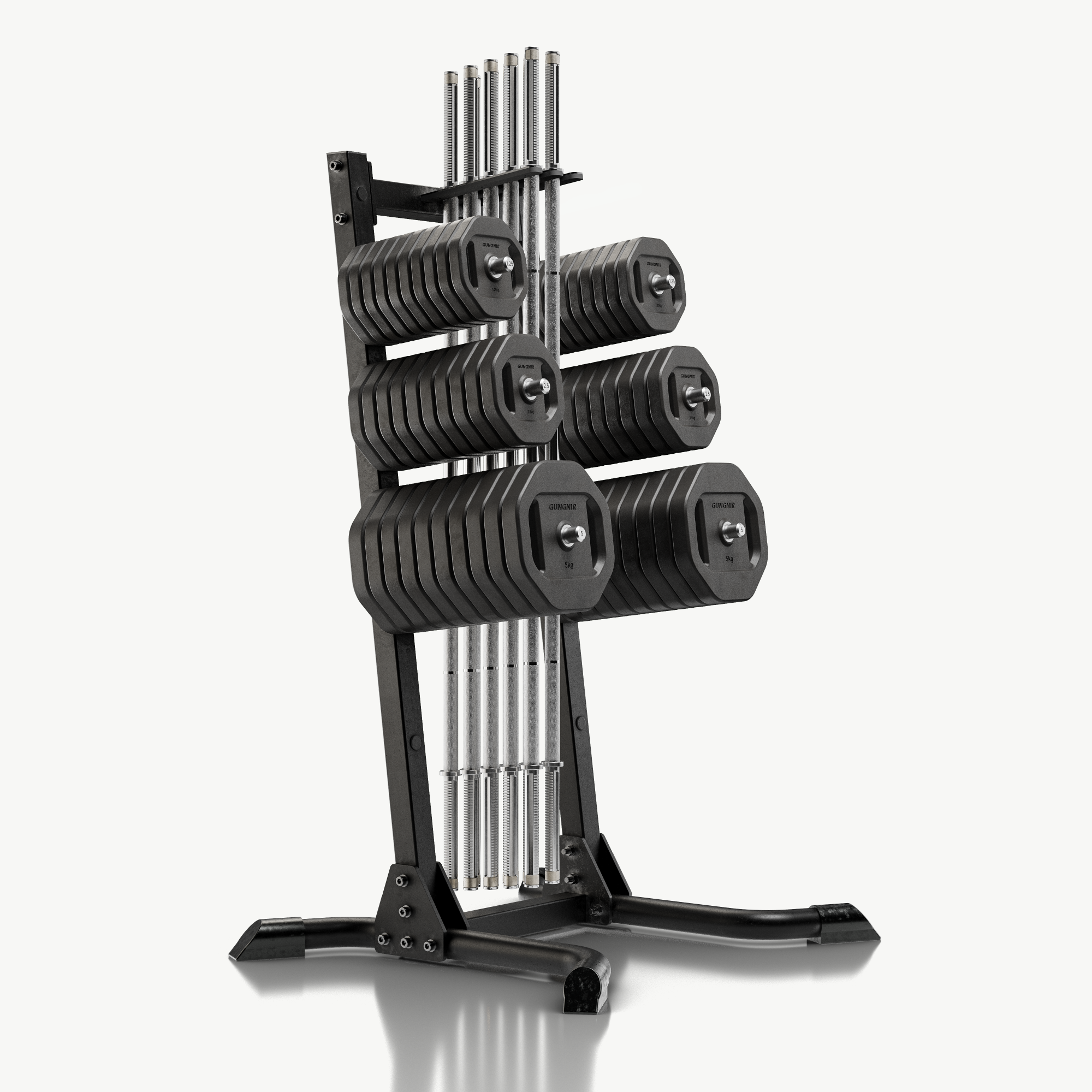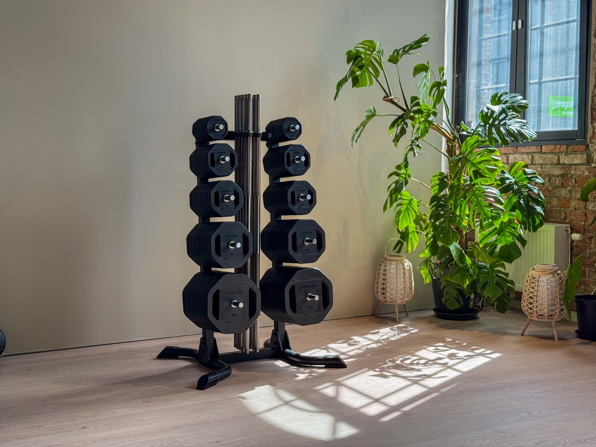 A The Group egy teljes mértékben testreszabható súlyzós rendszer, amelyet kifejezetten csoportos edzésekhez fejlesztettek. Tartalmazza a rudakat, a frakcionált súlytárcsákat és egy elegáns, helytakarékos tárolóállványt is – mindezt úgy megtervezve, hogy a lehető legjobb edzésélményt nyújtsa, kompromisszumok nélkül.
